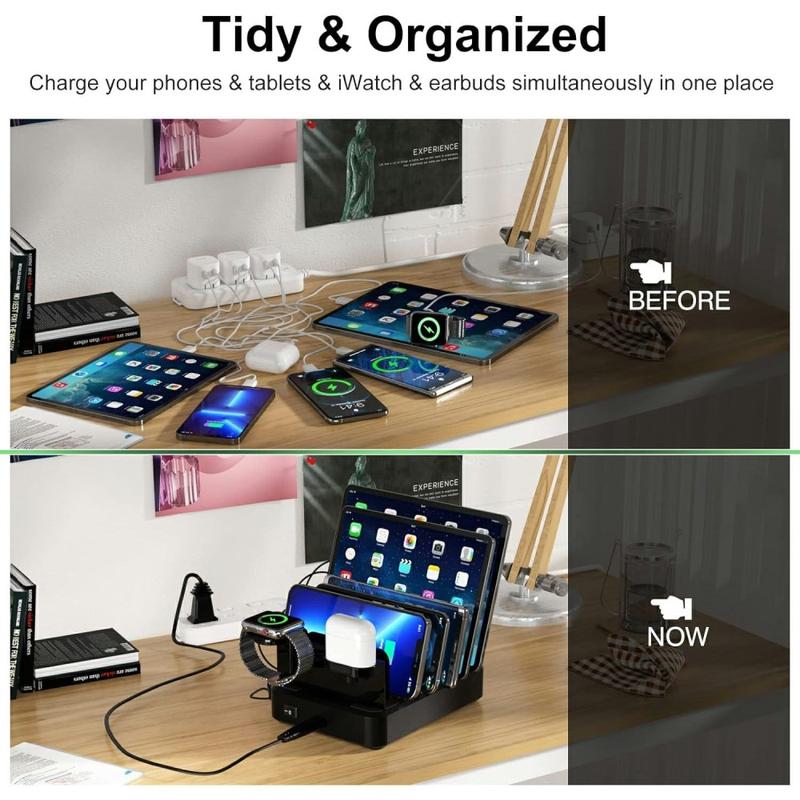 - Stellen Sie die Station auf einen Nachttisch und laden Sie über Nacht zwei Telefone, eine Uhr und Kopfhörer auf - und lassen Sie die Steckdosen für Gäste frei.