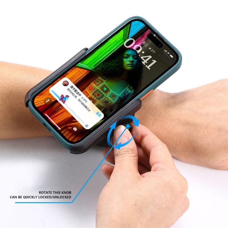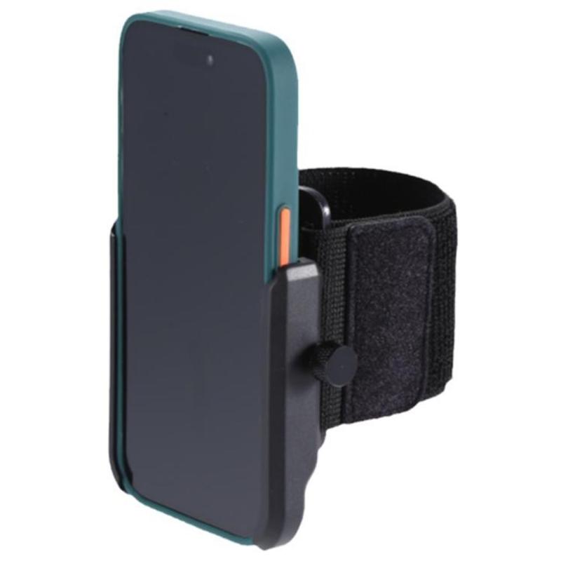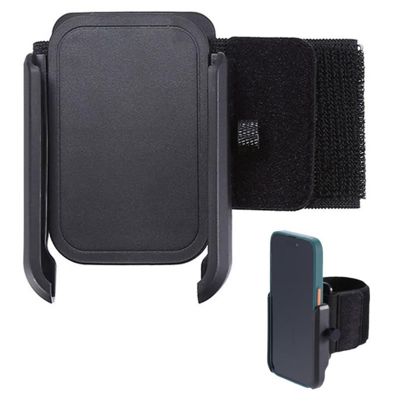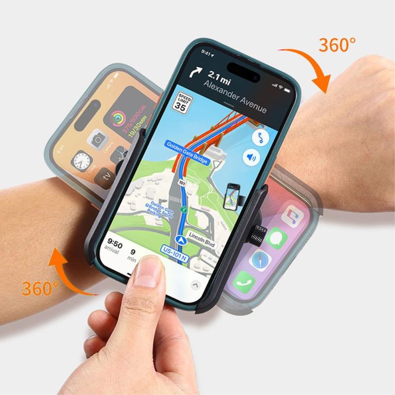 Die Halterung ist als Armband konzipiert, das auch an einen Arm angepasst werden kann, und eignet sich ideal für die freihändige Nutzung bei körperlichen Aktivitäten