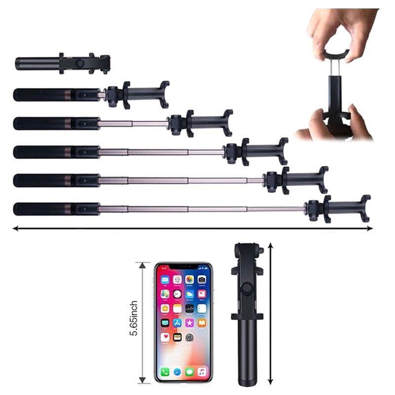 Der Selfiestick lässt sich auf Miniaturgröße, nicht größer als Ihr Smartphone, zusammenklappen. Dadurch können Sie ihn in Ihrer Hosen- oder Handtasche mitführen. Durch das 2-in-1-Design brauchen Sie nicht mehr Zubehör mit sich herumschleppen.