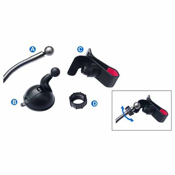 - Inklusive 3 Teilen: einem langen, flexiblen Schwanenhals mit einem großen Metall-Clip, ein Kunststoff-Clip-Halter aus Kunststoff und ein Stativ mit Saugnapf