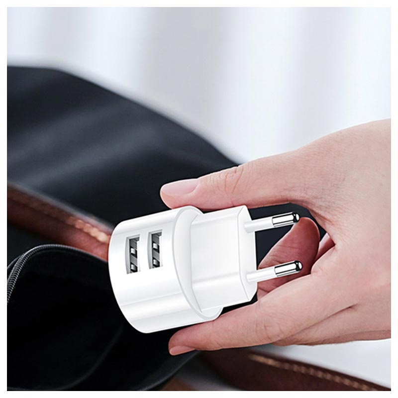Usams CC081 T20 Schnelles Reiseladegerät mit zwei Anschlüssen und Lightning-Kabel - EU-Stecker