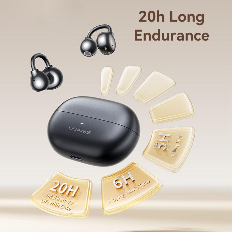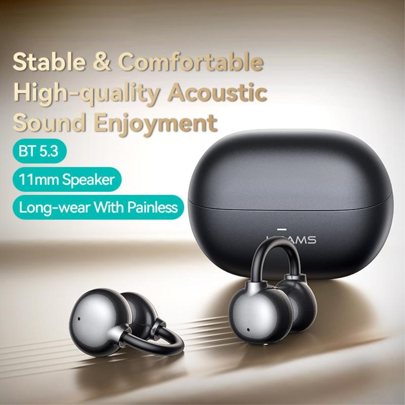 Usams Echo R02 Clip-On Wireless-Kopfhörer - 25 Stunden Gesamtspielzeit, Bluetooth 5.3 Komfort für unterwegs