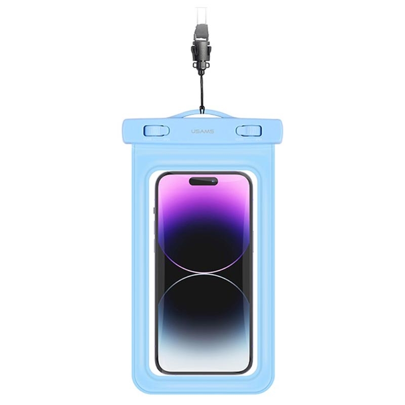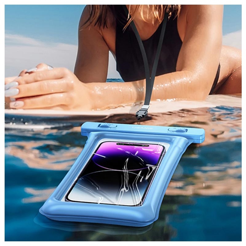 Bereiten Sie Ihr Smartphone auf Aktivitäten im Wasser vor! Diese schwimmende wasserdichte Hülle US-YD011 von Usams für Smartphones mit einer Bildschirmdiagonale von bis zu 7 Zoll ist eine ideale Lösung, um Ihr Gerät am Strand, am Pool oder an regnerischen Tagen trocken und geschützt zu halten.