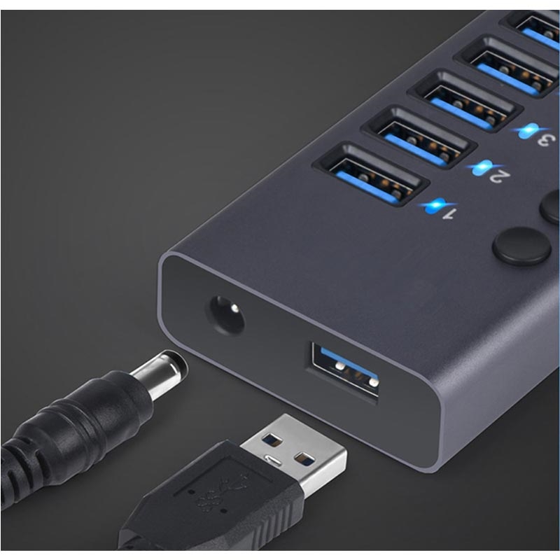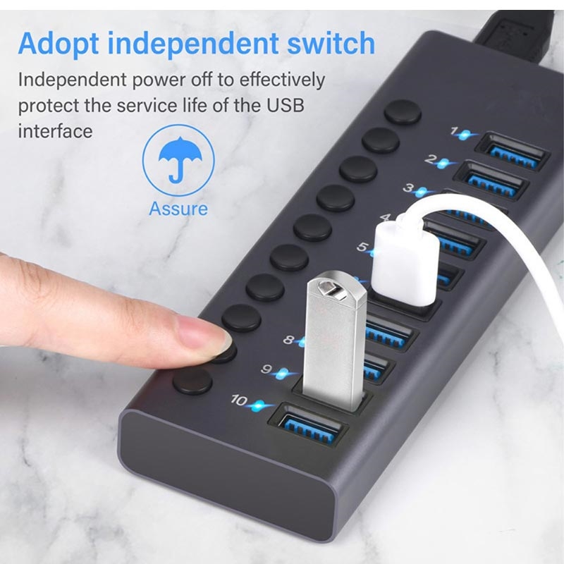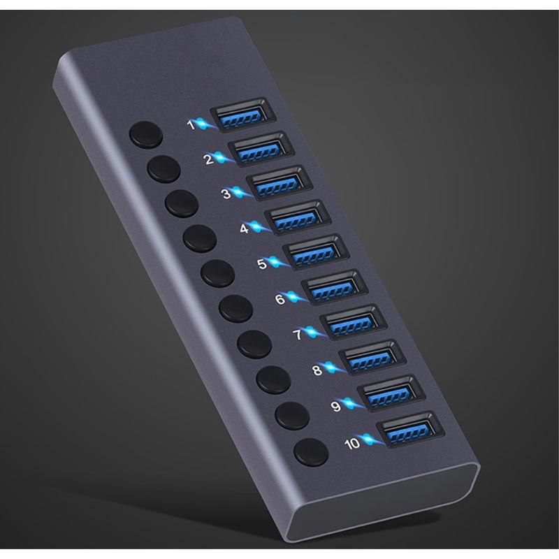 USB 3.0-Ladestation, Ladegerät, 10-Port-Ladegerät, Erweiterungs-Power-Hub, Ladestation mit unabhängigem Schalter, hoher Strom