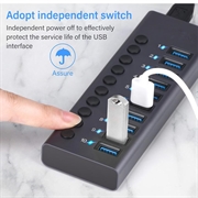 - Jeder Port verfügt über einen unabhängigen Schalter, der mehrere Geräte auflädt, ohne sich gegenseitig zu beeinträchtigen