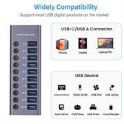 - 10 Ports ermöglichen das gleichzeitige Laden mehrerer Geräte. Ermöglicht den Zugriff auf USB-Flash-Laufwerke, Kartenleser, externe Festplatten und andere USB-Peripheriegeräte oder das Aufladen