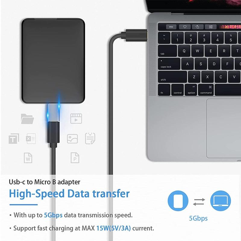• USB-C-Buchse auf USB 3.0 Micro-B-Stecker-Adapter - 5 Gbps Festplatten-SSD-Konverter, Aluminiumlegierung, 15 W