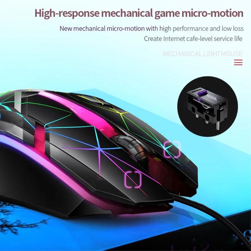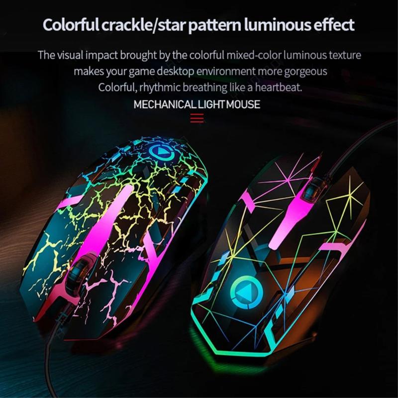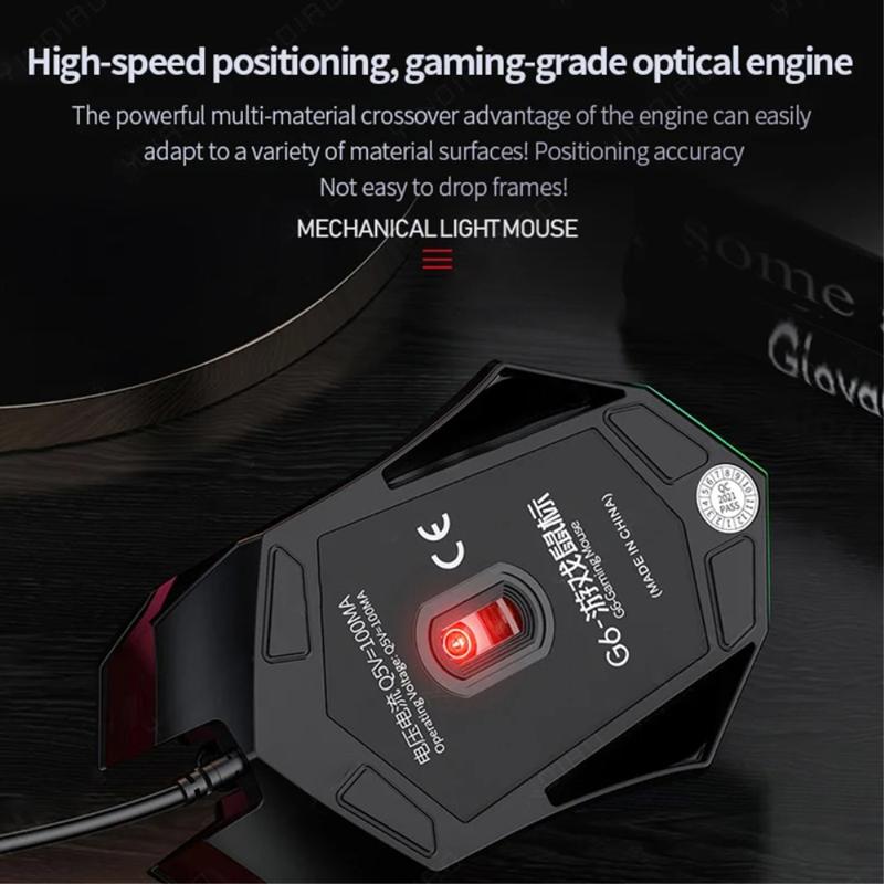 Die YINDIAO G3os G6 ist eine kabelgebundene Gaming-Maus, die Ihren Schreibtisch mit Kampfgeist und solider Leistung bereichert. Das inspirierte Gehäuse, das Crack-Art-Finish und der siebenfarbige, atmungsaktive RGB-Ring sorgen für einen auffälligen Look, während der optische Sensor in Esports-Qualität jede Bewegung mit glatten 1200 DPI verfolgt. Das robuste, geflochtene Kabel (1,42 m) ist widerstandsfähig und verschleißfest, und die hochwertige, matte Oberfläche ist auch bei langen Sessions angenehm.
