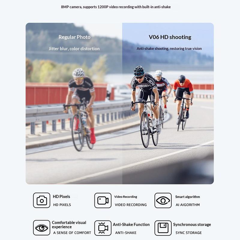 Die V06 AI Smart Glasses vereinen freihändiges HD-Aufnehmen, wetterfeste Robustheit, Stereo-Audio und intelligente Sprachinteraktion in einem tragbaren Gerät – ideal für Radfahrer, Reisende und Nutzer, die bequem Videos aufnehmen möchten, ohne zusätzliche Ausrüstung mitnehmen zu müssen.