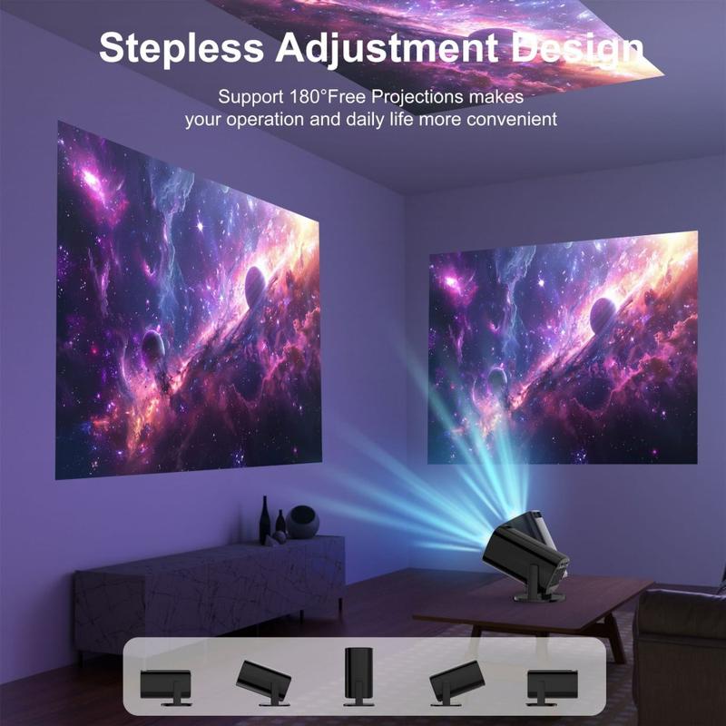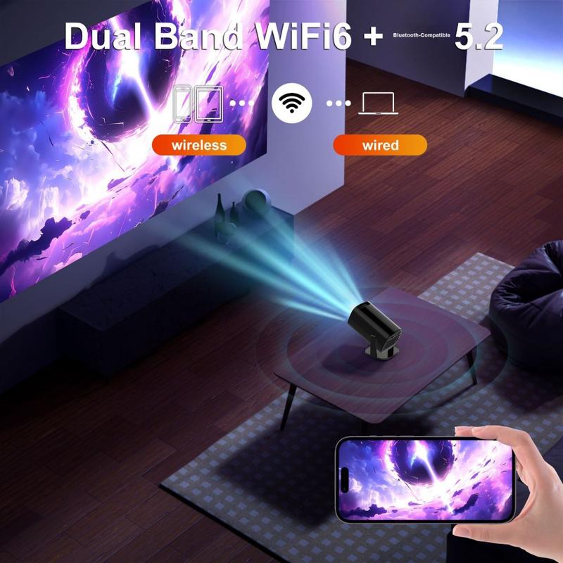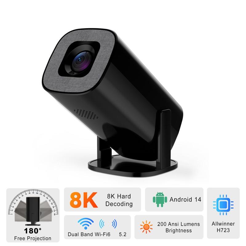 V1 Tragbarer Android 14-Projektor (200 ANSI) - 720p nativ, automatische Trapezkorrektur, 180° Neigung, WiFi 6 Dualband und Bluetooth 5.2, 1 GB/8 GB