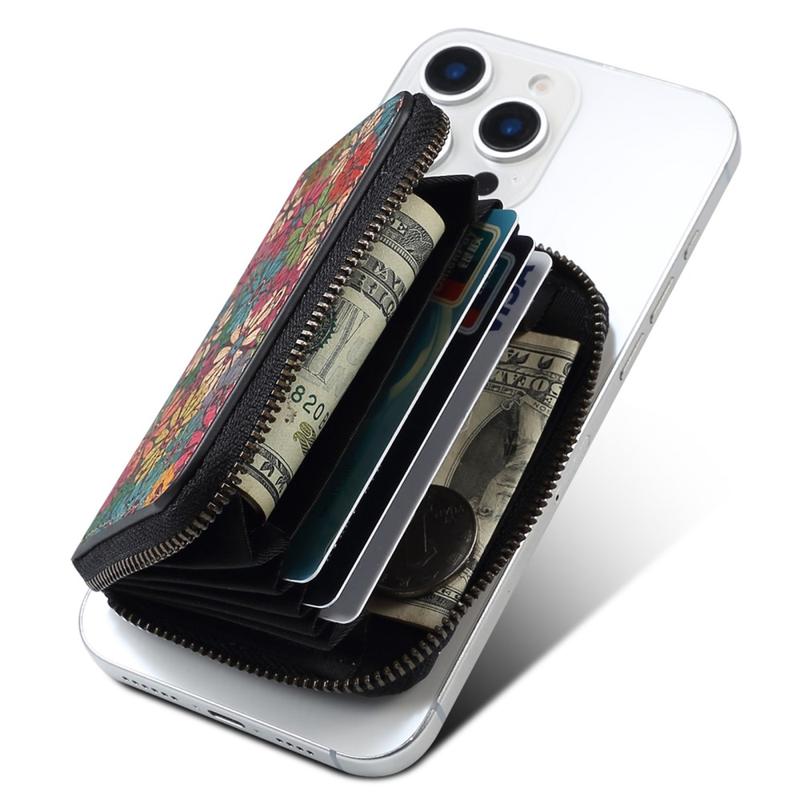 V16 Magnetisches Kartenetui mit Reißverschluss - Floral gemusterte Brieftasche, MagSafe-kompatibel