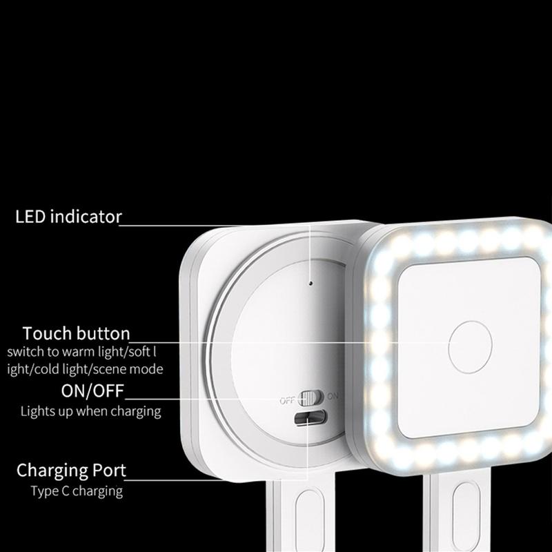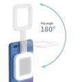 Der Lampenkopf lässt sich um bis zu 180° nach oben klappen, sodass Sie das Licht genau dort ausrichten können, wo Sie es benötigen. Dank der stufenlosen Einstellung von Helligkeit und Farbtemperatur von warmen bis zu kühlen Tönen können Sie die Beleuchtung schnell an Make-up, Live-Streaming, Fotografie oder Videokonferenzen anpassen. Der integrierte Ständer ermöglicht es Ihnen außerdem, Ihr Smartphone sicher abzustellen, um freihändig zu schauen oder aufzunehmen.