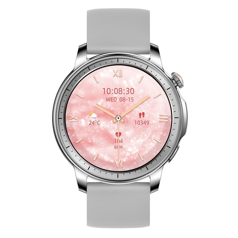 V65 1,32-Zoll-AMOLED-Touchscreen-Smartwatch Herzfrequenzmesser Frauen Sport-Armband, Silikonband - Silber