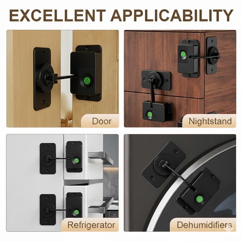 Die V86-Fingerabdruck-Kindersicherung wurde für den vielseitigen Schutz von Oberflächen im Haushalt entwickelt, darunter Kühlschränke, Schubladen, Nachttische, Schränke, Fenster, Waschmaschinen und Aktenschränke. Es kann sowohl durch Kleben (ohne Bohren) als auch durch Schrauben befestigt werden und passt sich so leicht an verschiedene Einrichtungen an.