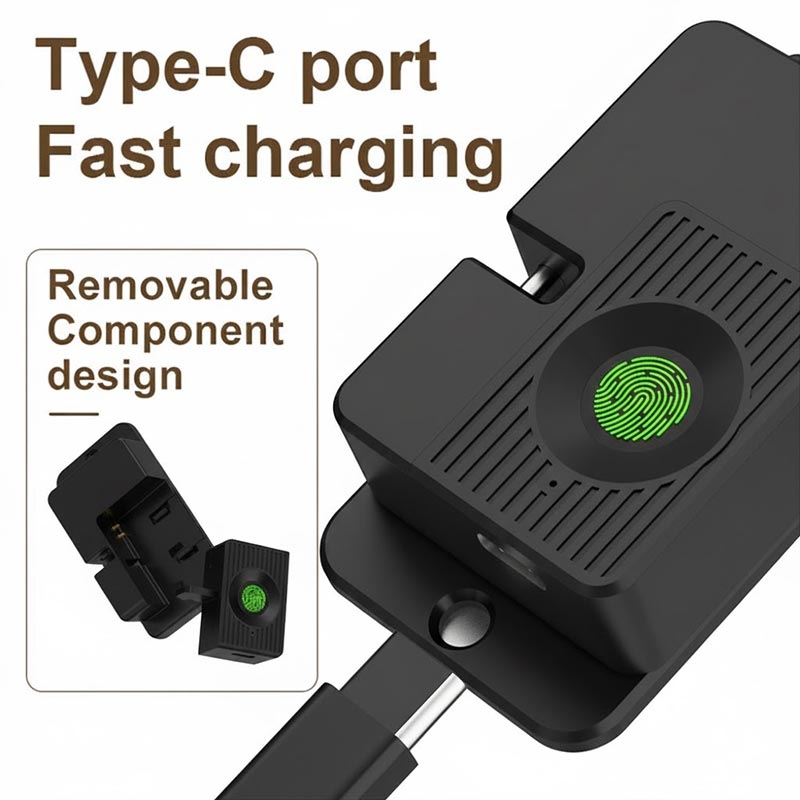 Das intelligente Schloss ist auf geringen Stromverbrauch ausgelegt und hält mit einer einzigen Ladung bis zu 10 Monate (bei ca. 5 Entriegelungen pro Tag). Über den USB-C-Anschluss lässt es sich schnell und einfach aufladen, sodass das Schloss immer einsatzbereit ist.