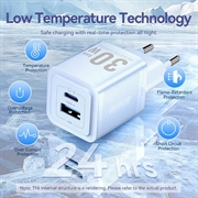 - Dual-Port-Ausgang: USB-C (30 W PPS / PD 3.0) und USB-A (30 W QC 4.0 / QC 3.0) für Telefone, Tablets und Ohrhörer