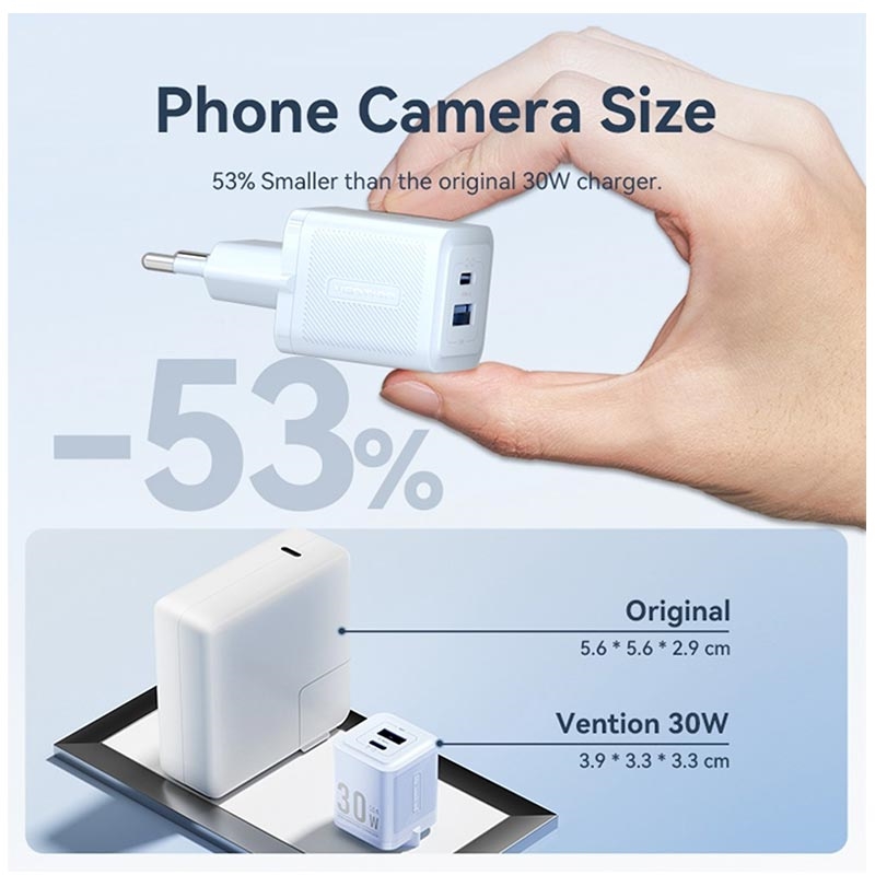 Vention FEQ 30W GaN Schnelles Wandladegerät - Dual USB-C und USB-A