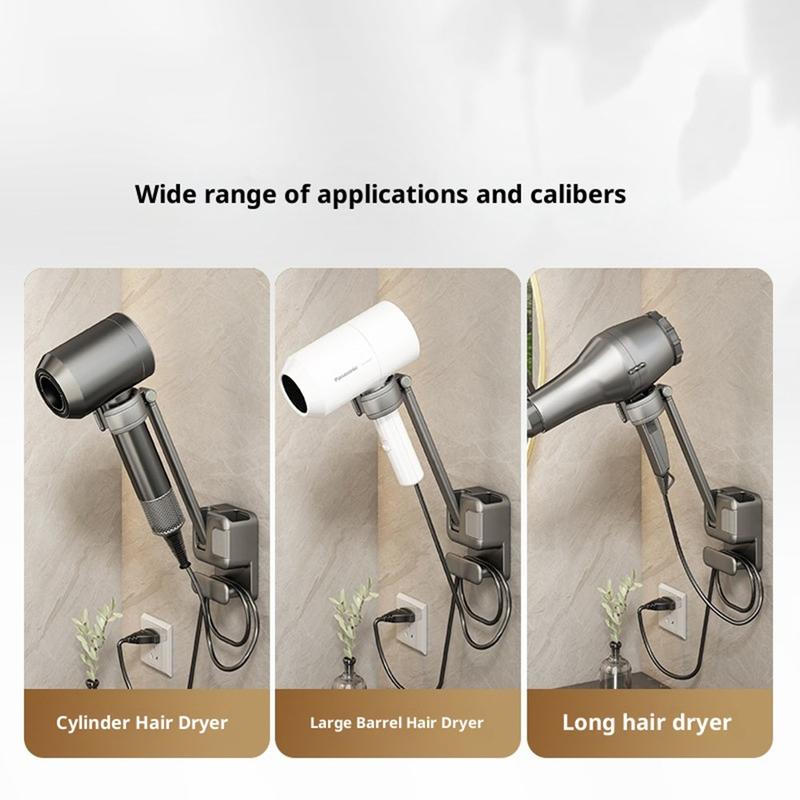 Verstellbarer, freihändiger Föhnhalter - Wandmontiertes Aufbewahrungsregal für das Badezimmer ohne Bohren mit Kabelhalterung