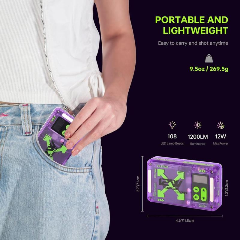 Bringen Sie Farbe in Studioqualität in jede Aufnahme. Der Viltrox RB-V12 vereint 12 W 360°-Farbleistung, magnetische Befestigung und intelligente App-Steuerung in einem handtellergroßen Panel, das nur 0,27 kg wiegt.