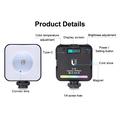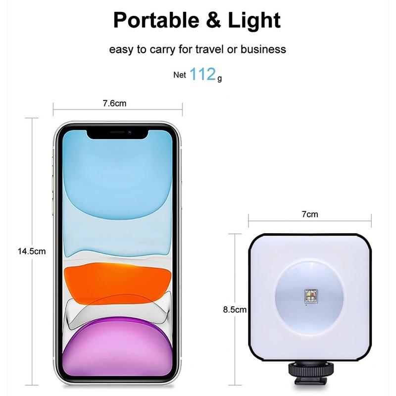 Mit 45 LEDs, einem Abstrahlwinkel von 60°, einer maximalen Beleuchtungsstärke von 800 Lux bei 0,3 m und einem hohen CRI von 95+ trägt diese 6W WS-6RGB LED-Videoleuchte zu einer präziseren Farbwiedergabe in Ihren Bildern bei.
