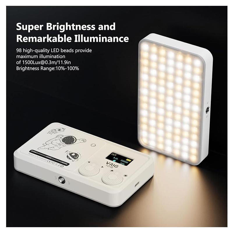 Die VRIG FD-98 LED-Videoleuchte wurde für Kreative entwickelt, die eine Beleuchtung in Studioqualität in einem tragbaren Format benötigen. Ausgestattet mit 98 High-CRI-LED-Perlen liefert sie eine helle, weiche und natürliche Beleuchtung für Fotografie, Videografie, Content-Erstellung und Livestreaming. Ob in Innenräumen oder unterwegs, dieses handtellergroße Aufhelllicht sorgt für gleichbleibend professionelle Ergebnisse.