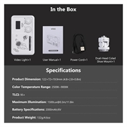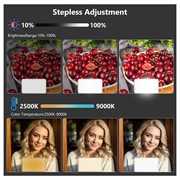 Mit der stufenlosen Einstellung zwischen warmen 2500K und kühlen 9000K können Sie präzise Lichtstimmungen für Interviews, Porträts, Produktaufnahmen oder Filmmaterial schaffen. Der breite Temperaturbereich ermöglicht eine nahtlose Anpassung an jede Umgebung.