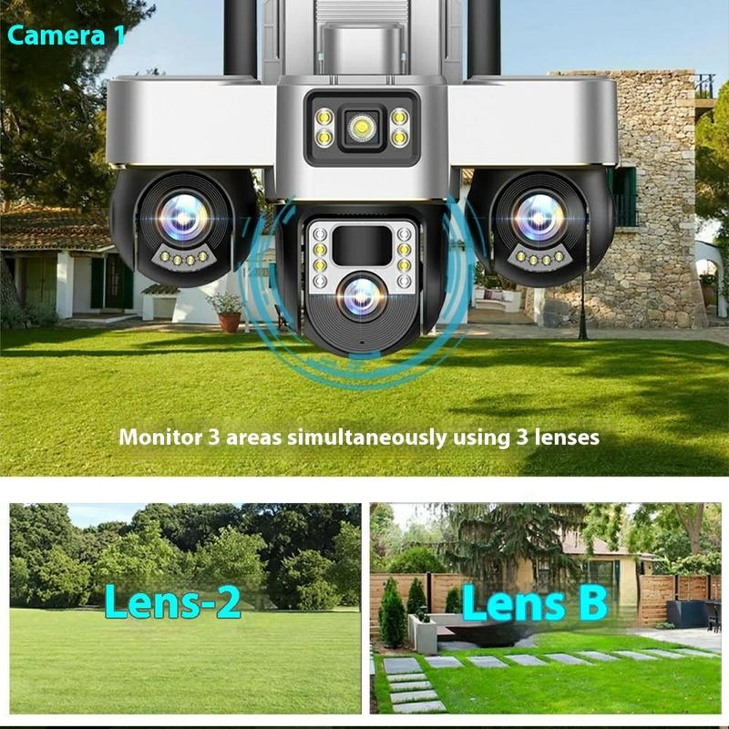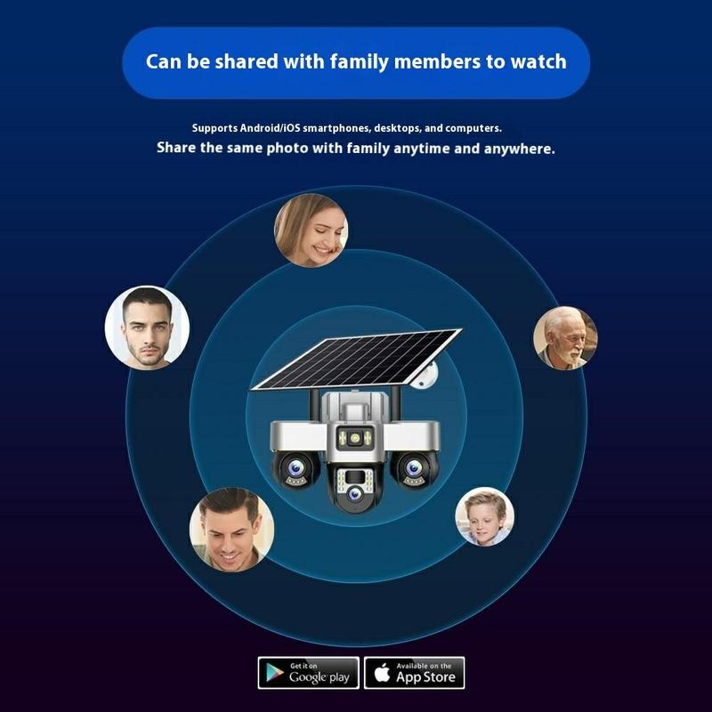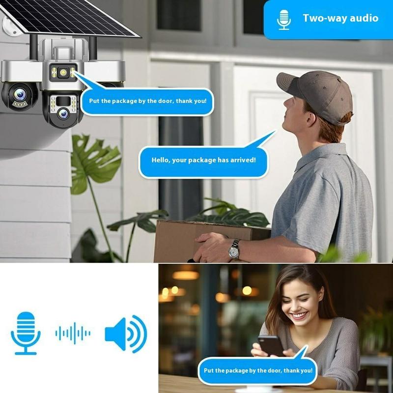 • VTS30 V380pro Solar-Überwachungskamera mit drei Objektiven - 360 ° Wi-Fi / 4 G Überwachungssystem mit 8 W Panel & 8 000 mAh Batterie