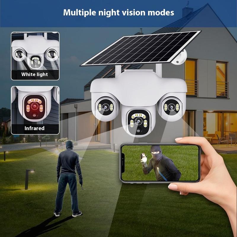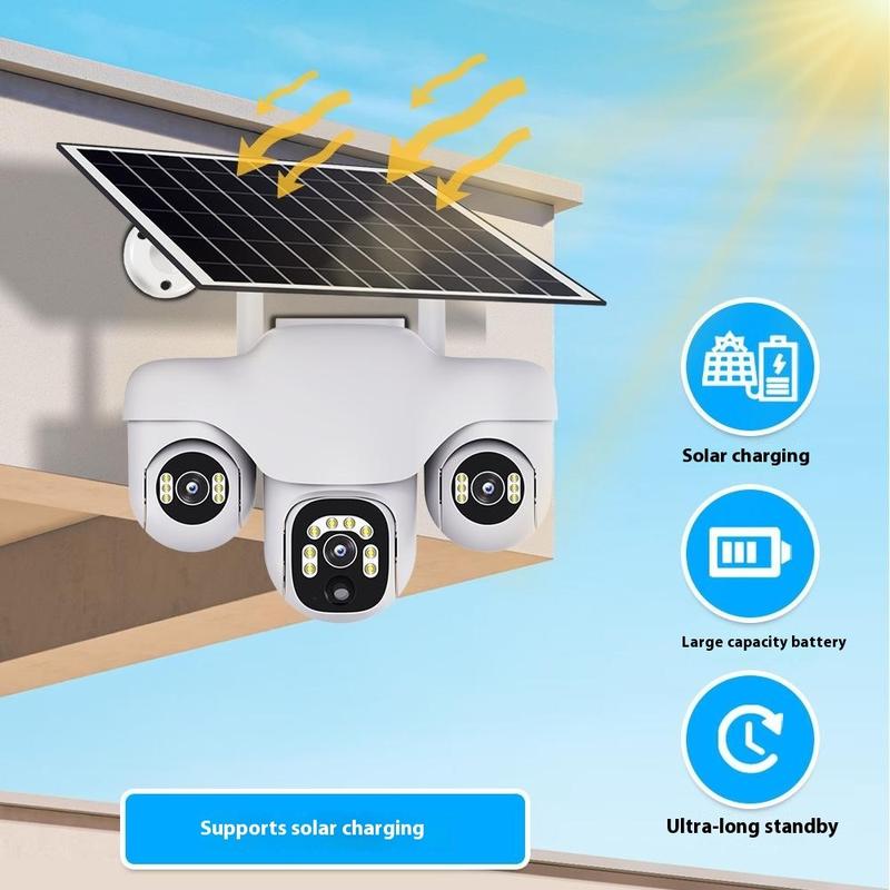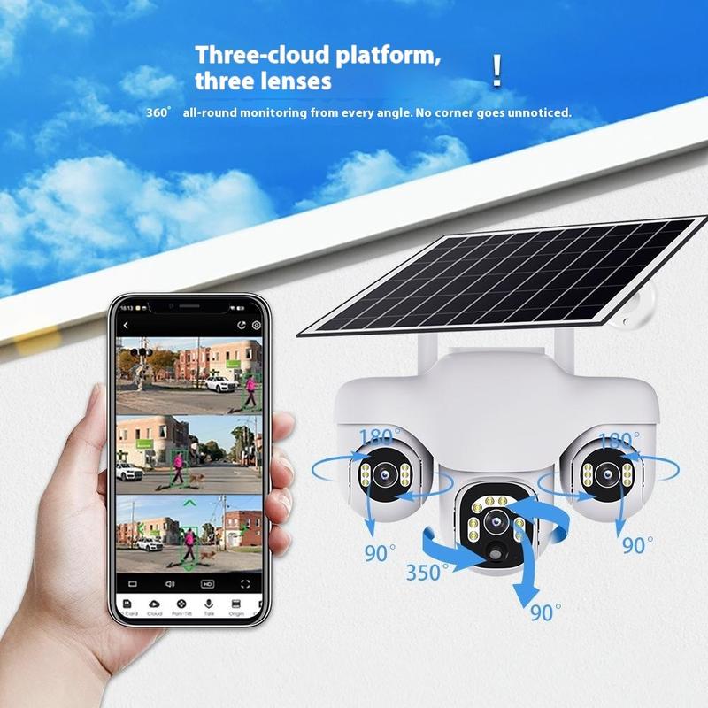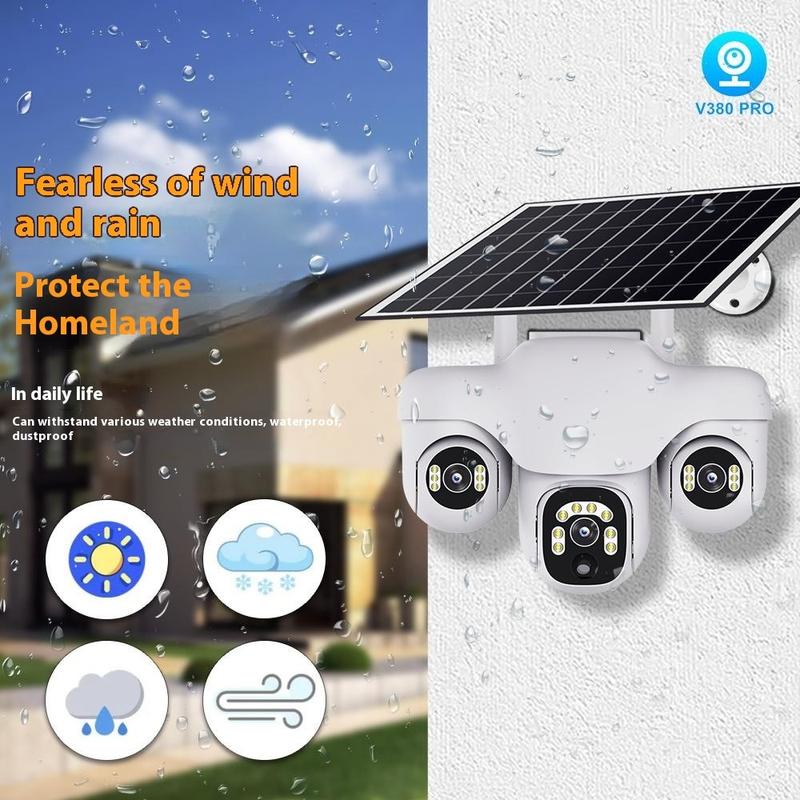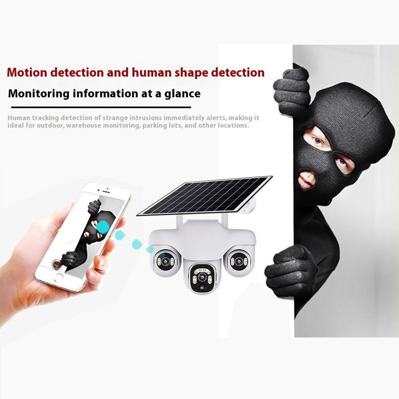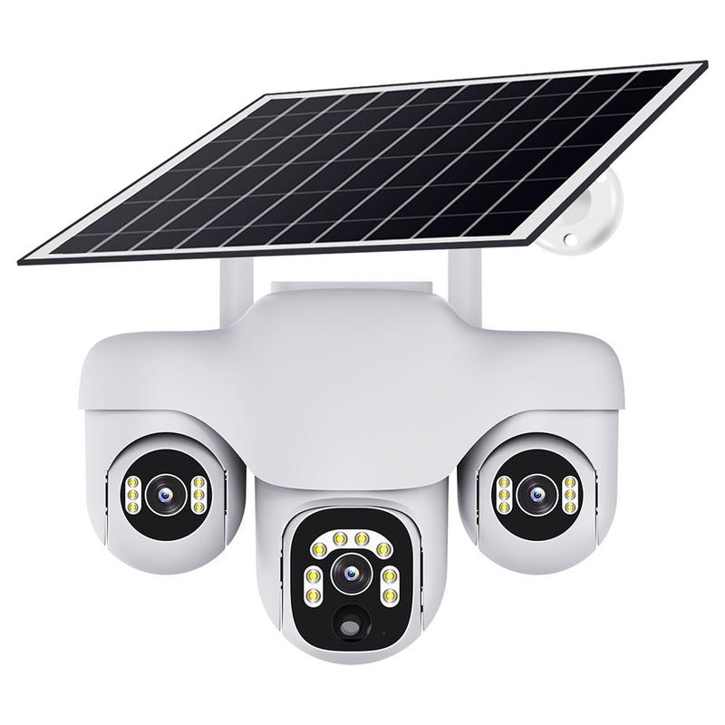 VTS31 V380 Solarbetriebene PTZ-Überwachungskamera mit Dreifachobjektiv - WLAN-Überwachungskamera für den Außenbereich mit Bewegungserkennung