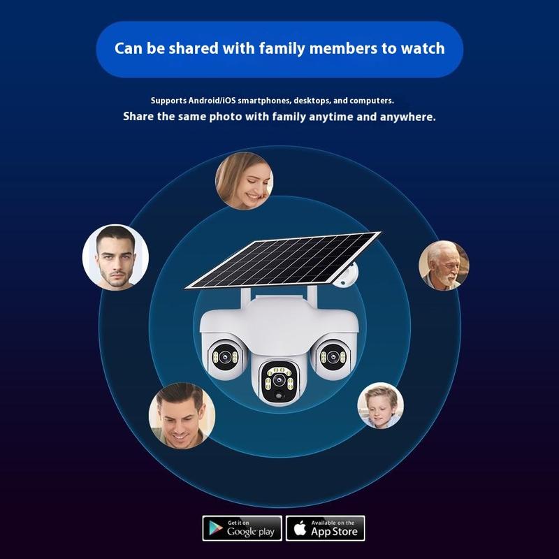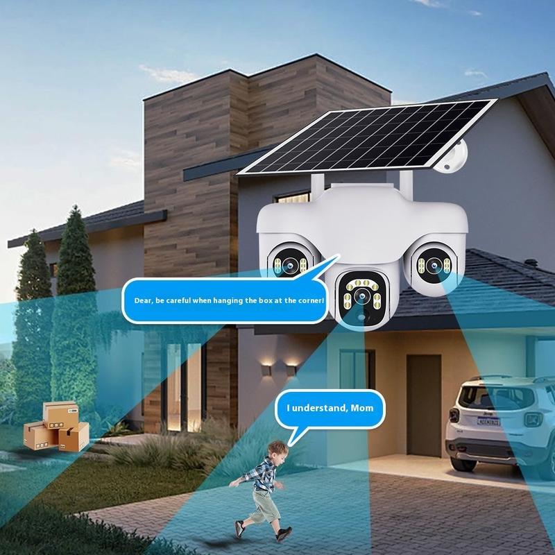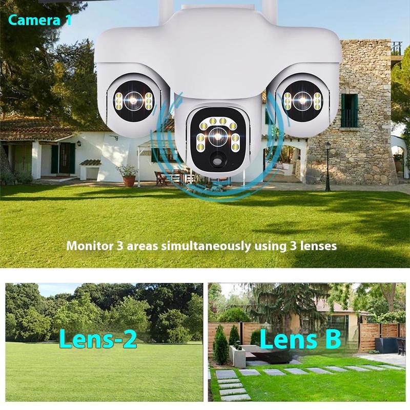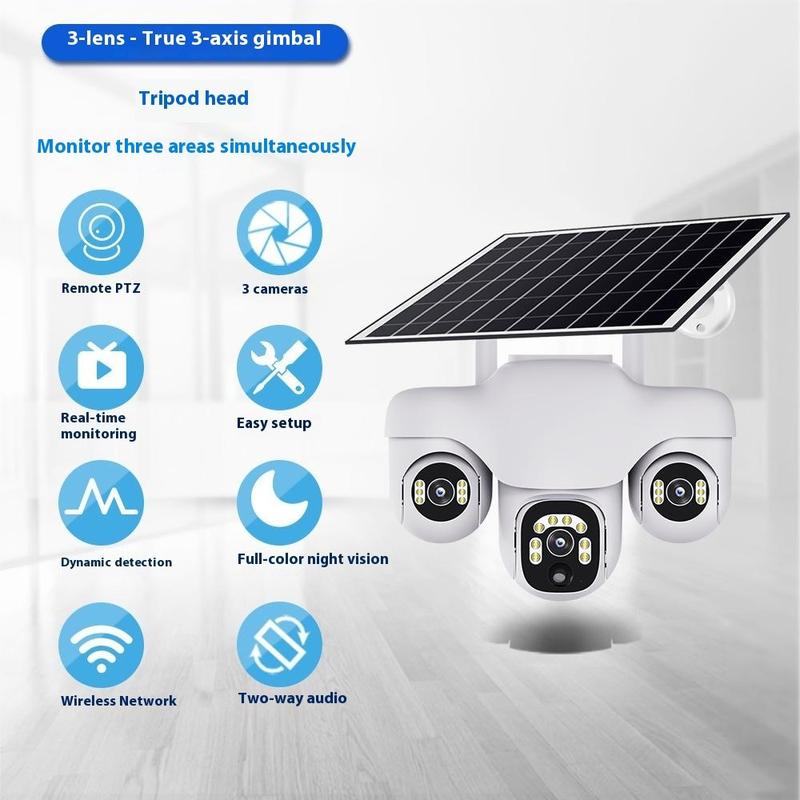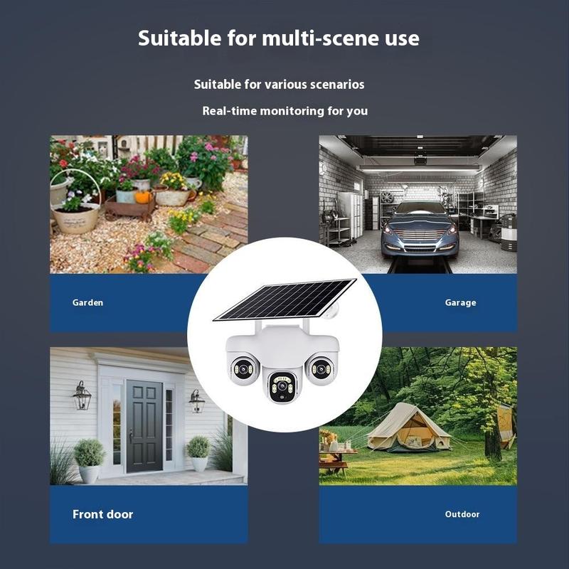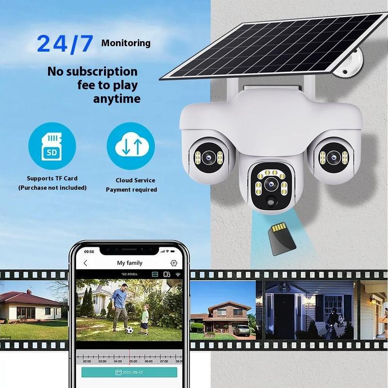 VTS31 V380 Solarbetriebene PTZ-Überwachungskamera mit Dreifachobjektiv - WLAN-Überwachungskamera für den Außenbereich mit Bewegungserkennung