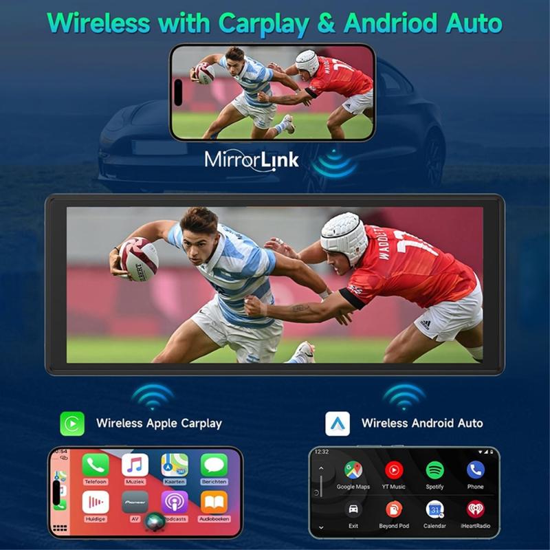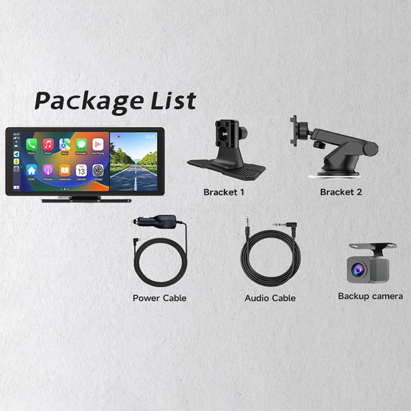Verbessern Sie Ihr Fahrerlebnis mit dem W514A - einem tragbaren 10.26-Zoll-CarPlay-Bildschirm, der Dual-Recording-Dashcam-Funktionen, gestochen scharfe 1080p-Videos und eine hochauflösende AHD-Rückfahrkamera vereint. Dieses All-in-One-System wurde entwickelt, um Navigation, Musikstreaming und Freisprechkommunikation zu vereinfachen, und verwandelt jedes Fahrzeug in ein intelligenteres, sichereres Fahrzeug.
