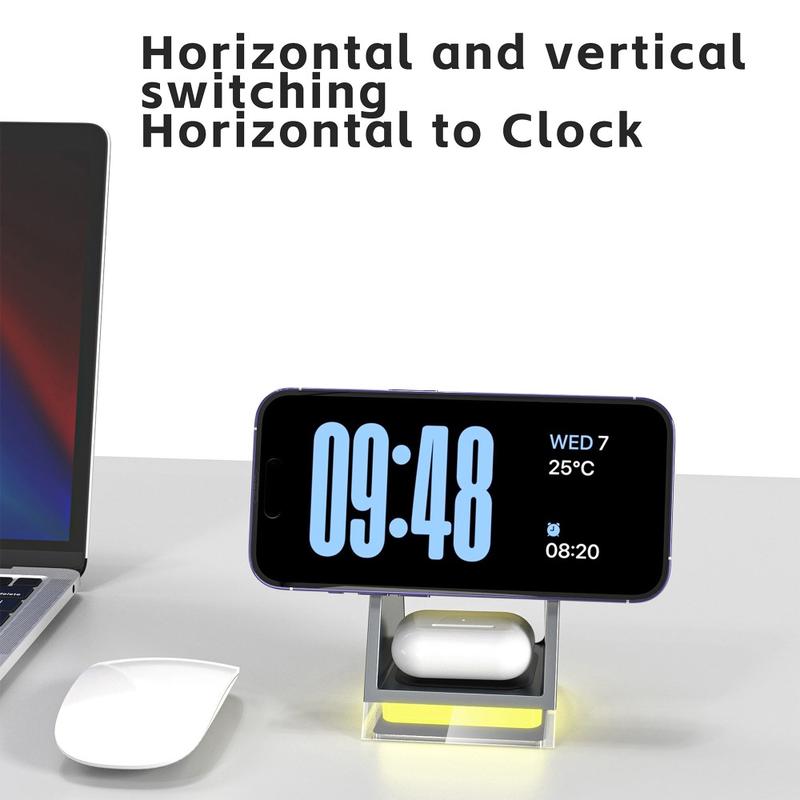 W83 3-in-1 Magnetisches kabelloses Ladegerät mit Kristall-Nachtlicht - Schwarz