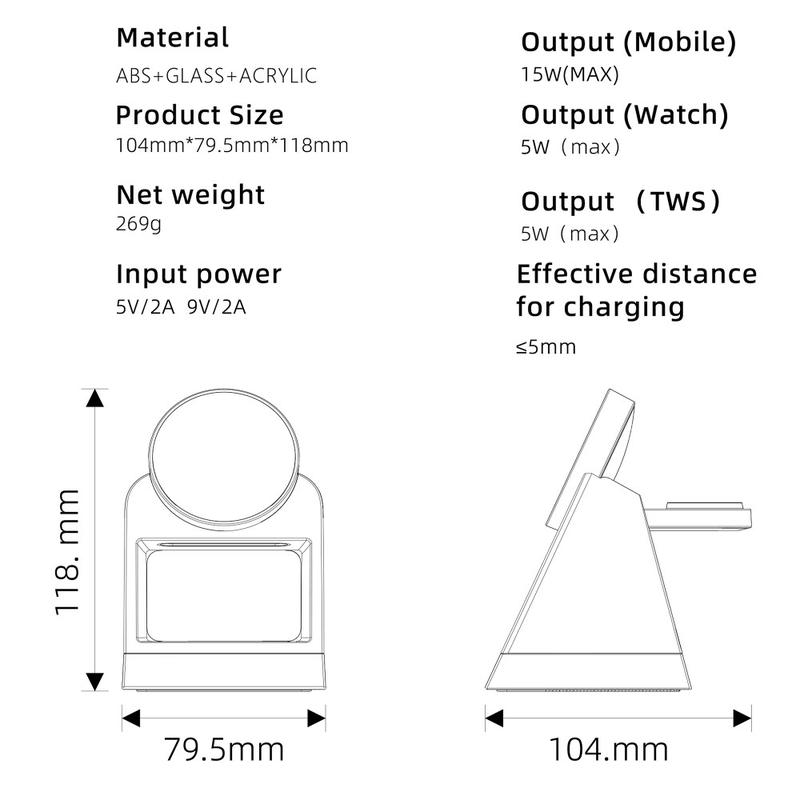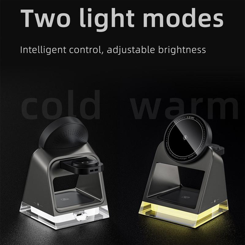 • W83 3-in-1 Magnetisches drahtloses Ladegerät mit Kristall-Nachtlicht für Smartphone, Smartwatch, TWS-Kopfhörer - 15W