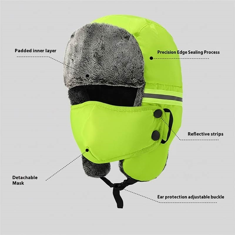 Mützen im Trapper-Stil wurden ursprünglich für arktische Entdecker und Piloten entwickelt, die ihre Fähigkeit schätzten, Wärme zu speichern und gleichzeitig vor Wind zu schützen. Moderne Designs wie diese Mütze ergänzen diese Tradition mit Sicherheitsmerkmalen wie reflektierenden Details und integrierten Gesichtsmasken, um den heutigen Outdoor-Anforderungen gerecht zu werden.