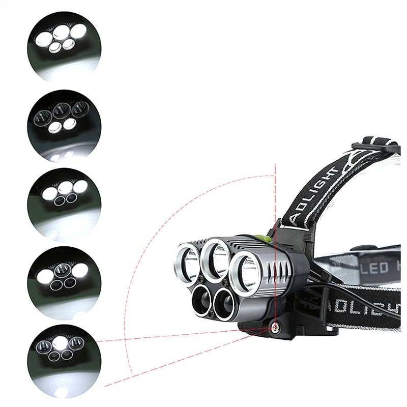 Erhellen Sie Ihre nächtlichen Abenteuer mit dieser leistungsstarken LED-Stirnlampe! Die 3T6 2XPE superhelle Stirnlampe verfügt über fünf leistungsstarke LEDs, die bis zu 5000 Lumen liefern. Das Stirnband lässt sich leicht verstellen, ebenso wie der Leuchtwinkel.