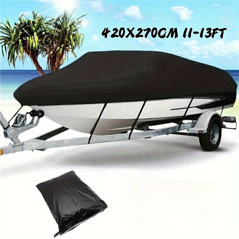 • Wasserdichte 210D Abdeckung für 11-13 Fuß Boote (420 x 270cm) - PU-beschichtete Sonnen- und Wetterschutzabdeckung mit verstellbaren Riemen, Schnallen und Aufbewahrungstasche