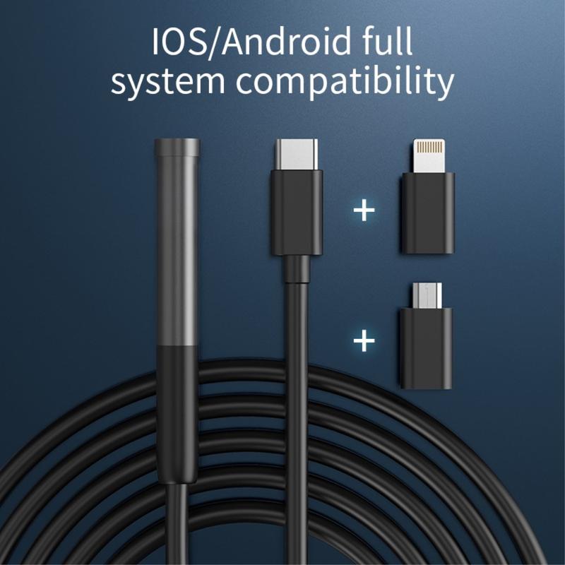 Wasserdichte 8mm USB-C Endoskopkamera für iPhone, iPad, Smartphones, Tablet - USB-C/Blitzadapter, USB-C/microUSB Adapter - 3m