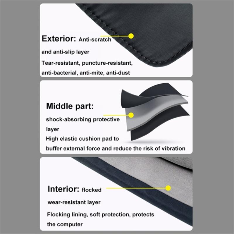 Mehrschichtige Laptophüllen sind so konzipiert, dass sie Stöße absorbieren und das Risiko von Schäden durch versehentliche Stöße verringern. Nylon wird häufig für Schutzhüllen verwendet, da es leicht, haltbar und feuchtigkeitsbeständig ist. Schlanke Laptoptaschen werden immer beliebter, da immer mehr Benutzer leichten Schutz bevorzugen, der problemlos in größere Taschen passt, ohne die Sicherheit zu beeinträchtigen.