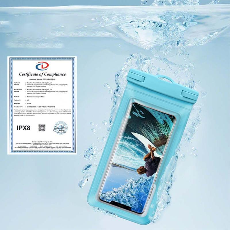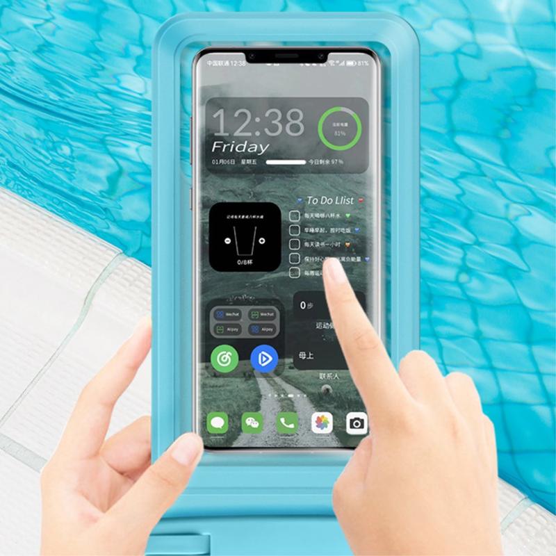 Hergestellt aus PVC mit transparentem, empfindlichem Touch, der es Ihnen ermöglicht, Ihr Telefon in unserer wasserdichten Hülle zu benutzen, egal welche Wasseraktivität Sie gerade ausüben