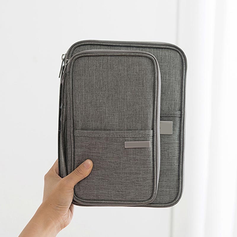 Mit dieser großen Reisetasche sind alle Dokumente auf Geschäftsreisen oder im Familienurlaub sicher und organisiert. Die Tasche aus leichtem 300D kationischem Polyester ist spritzwassergeschützt und wiegt in einer Umhängetasche fast nichts. Ein durchgehender Reißverschluss lässt sich öffnen und gibt den Blick auf spezielle Fächer für vier Pässe, Bordkarten, Bankkarten und Bargeld frei, sodass Check-in und Sicherheitskontrollen schneller und stressfreier vonstatten gehen.