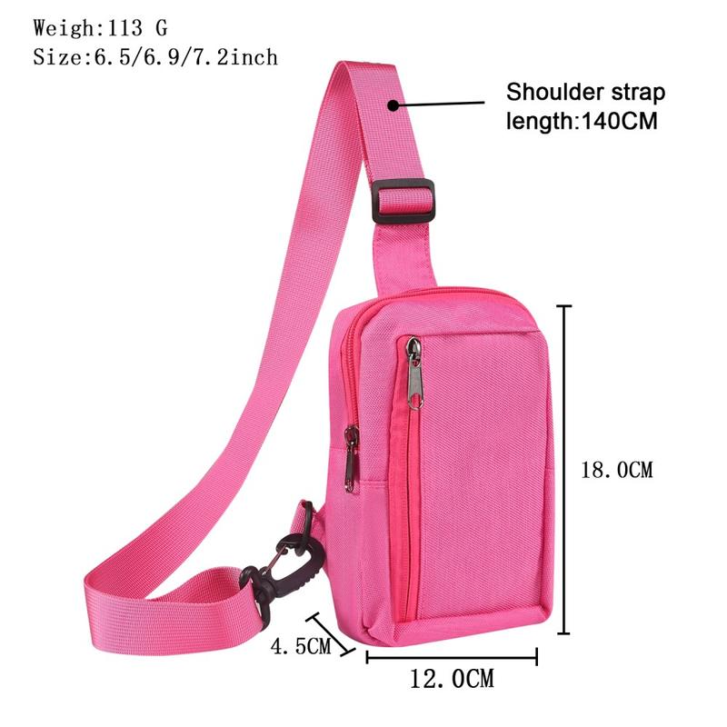 Mit dieser Brust- und Schultertasche aus wasserfestem Nylon können Sie Ihr Handy und andere wichtige Dinge bequem transportieren. Sie eignet sich für den Freizeitgebrauch oder für Reisen und bietet Schutz und Stil für Handys bis zu 7,2 Zoll. Der verstellbare Trageriemen und das leichte Design sorgen für Komfort, während das strapazierfähige Nylonmaterial Ihre Habseligkeiten vor den Elementen schützt.