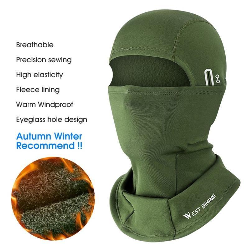 WEST BIKING YP0201343 Winddichter Fahrradschal Thermische Halsmanschette Warme Atmungsaktive Halsdecke Kopfbedeckung mit Brillenlöchern - Grün