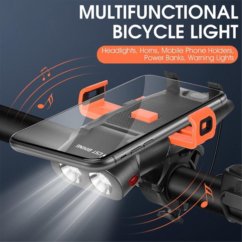 5-in-1-Funktion: Powerbank, Fahrradscheinwerfer, Handyhalter, Hupe, Warnlicht