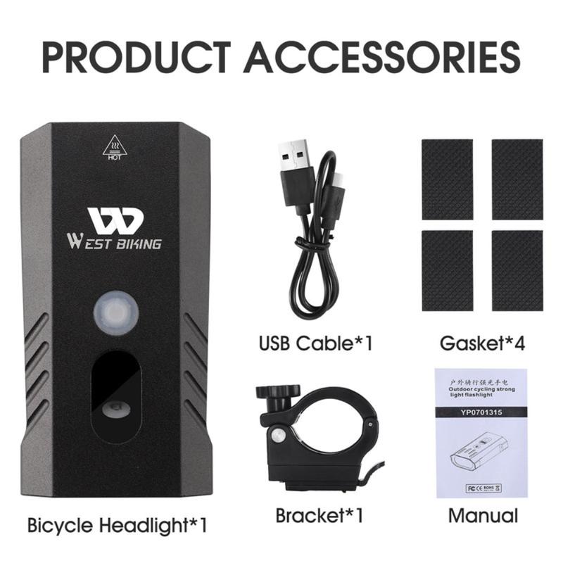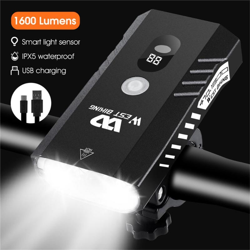 WEST BIKING YP0701329 1600LM Bright LED Bike Front Light Fahrrad Nacht Radfahren Sicherheit Lampe Taschenlampe