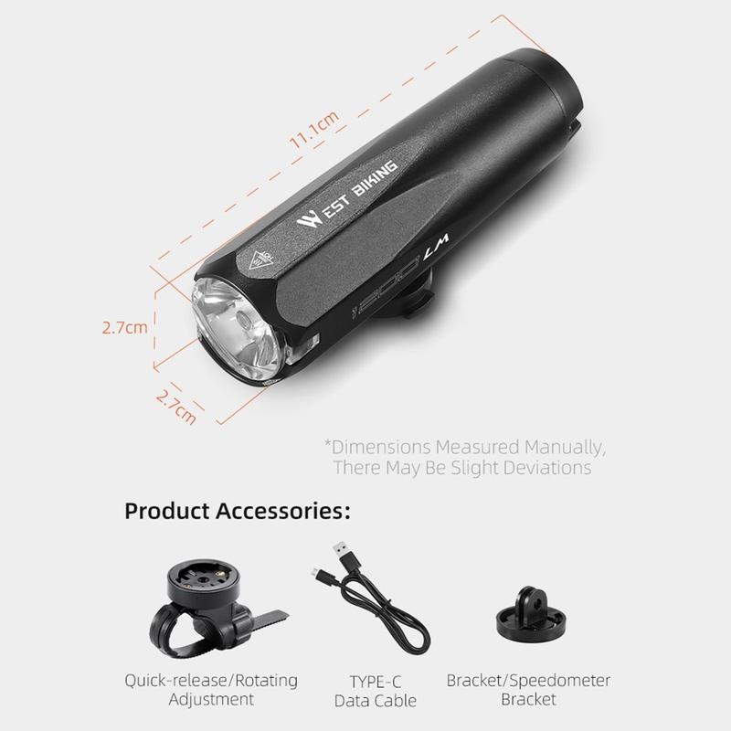 WEST BIKING YP0701404 Multifunktionales Fahrradlicht Sensing 600 Lumen Typ-C Scheinwerfer Rennradlicht