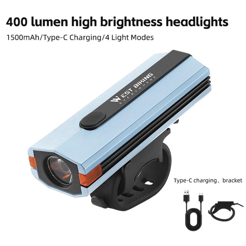 WEST BIKING YP0701407 Kunststoff-Fahrradscheinwerfer 400LM Nacht Radfahren Taschenlampe Fahrrad Frontlicht - blau