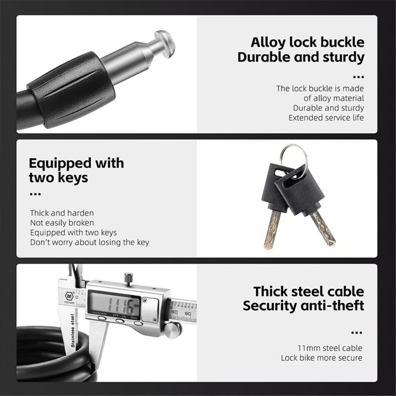 11mm verdicktes Stahlkabelschloss, hohe Zähigkeit, sicher und zuverlässig, Anti-Knocking, Anti-Säge und Anti-Smash