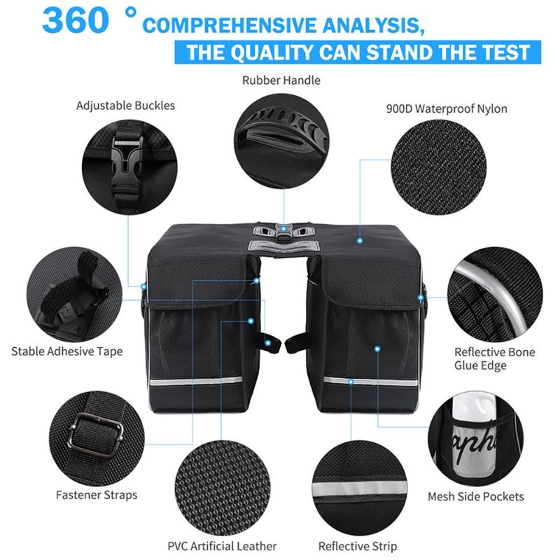- Doppelseitige Gepäcktaschen verteilen das Gewicht gleichmäßig für eine bessere Balance des Fahrrads