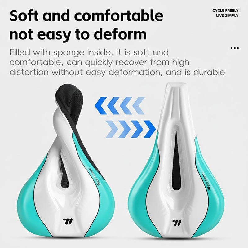 • Machen Sie Ihre Fahrten komfortabler mit dem Fahrradsattelbezug WEST BIKING YP0801256. Er besteht aus weichem Memory-Schaumstoff mit Rückfederung und einer wasserdichten PU-Oberfläche, reduziert den Druck auf den Sattel und verbessert den Komfort auf längeren Fahrten. Die ergonomische 3D-Form mit einem hohlen, atmungsaktiven Netzgewebe unterstützt die Luftzirkulation, um die Wärmeentwicklung zu reduzieren, während der große rutschfeste Silikonbereich den Bezug während des Pedalierens stabil hält. Eine strapazierfähige Oxford-Gewebestruktur sorgt für zusätzliche Verschleißfestigkeit und macht ihn zu einer praktischen Aufwertung für Rennräder und viele andere Fahrradtypen.