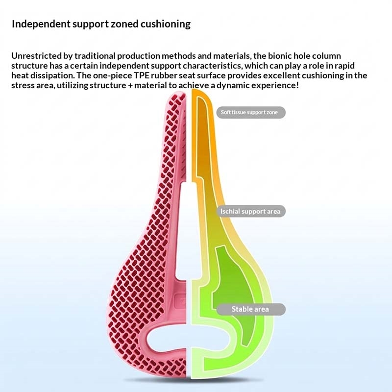 Dieser Sattel ist eine hervorragende Wahl für Radfahrer, die sich mehr Komfort und Druckentlastung bei täglichen Fahrten, beim Training oder beim Wochenendausflug wünschen. Die Wabenstruktur und der hohle Kern sorgen für besseren Halt und bessere Belüftung, während die leichte Bauweise das Fahrrad agil hält.