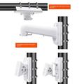 Die Halterung ist für die meisten Überwachungskameras geeignet und kann an Masten, runden Pfosten und Wandecken installiert werden. Das gesamte erforderliche Installationszubehör ist im Lieferumfang enthalten und sorgt für einen unkomplizierten Installationsprozess.
